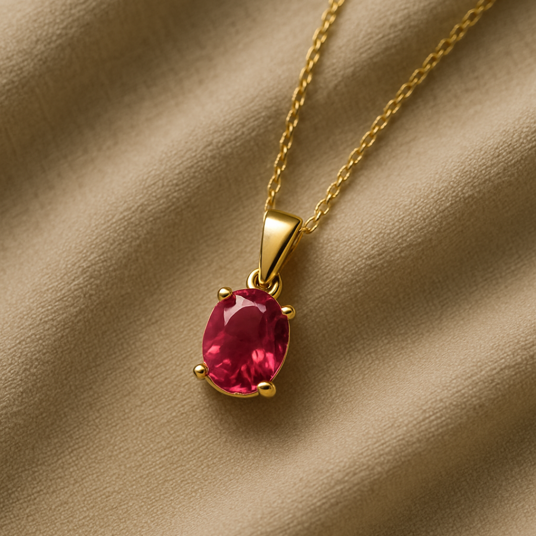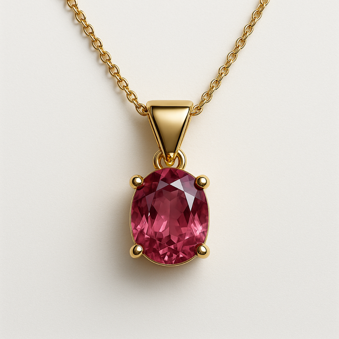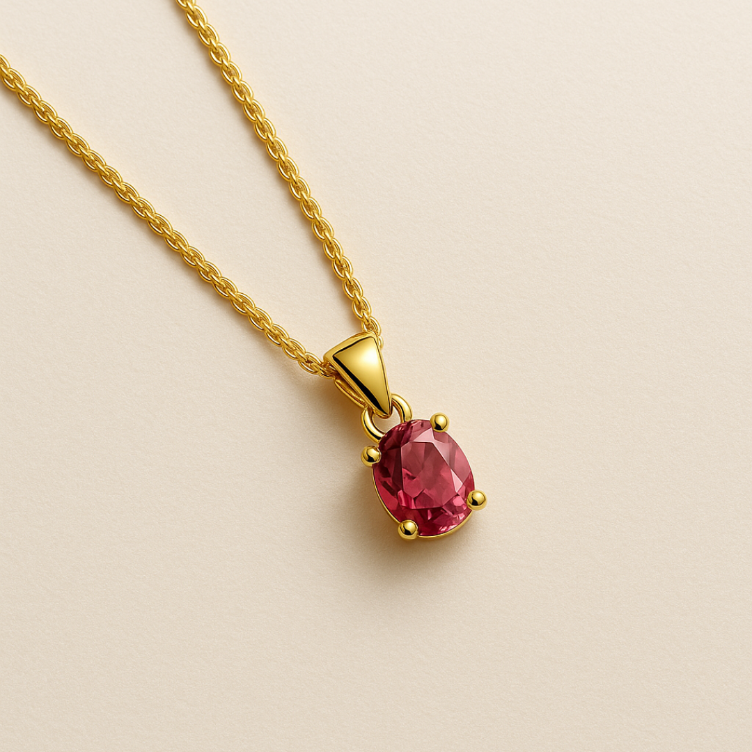 14 Ayar Altın Doğal Pembe Turmalin Tektaş Zincir Kolye