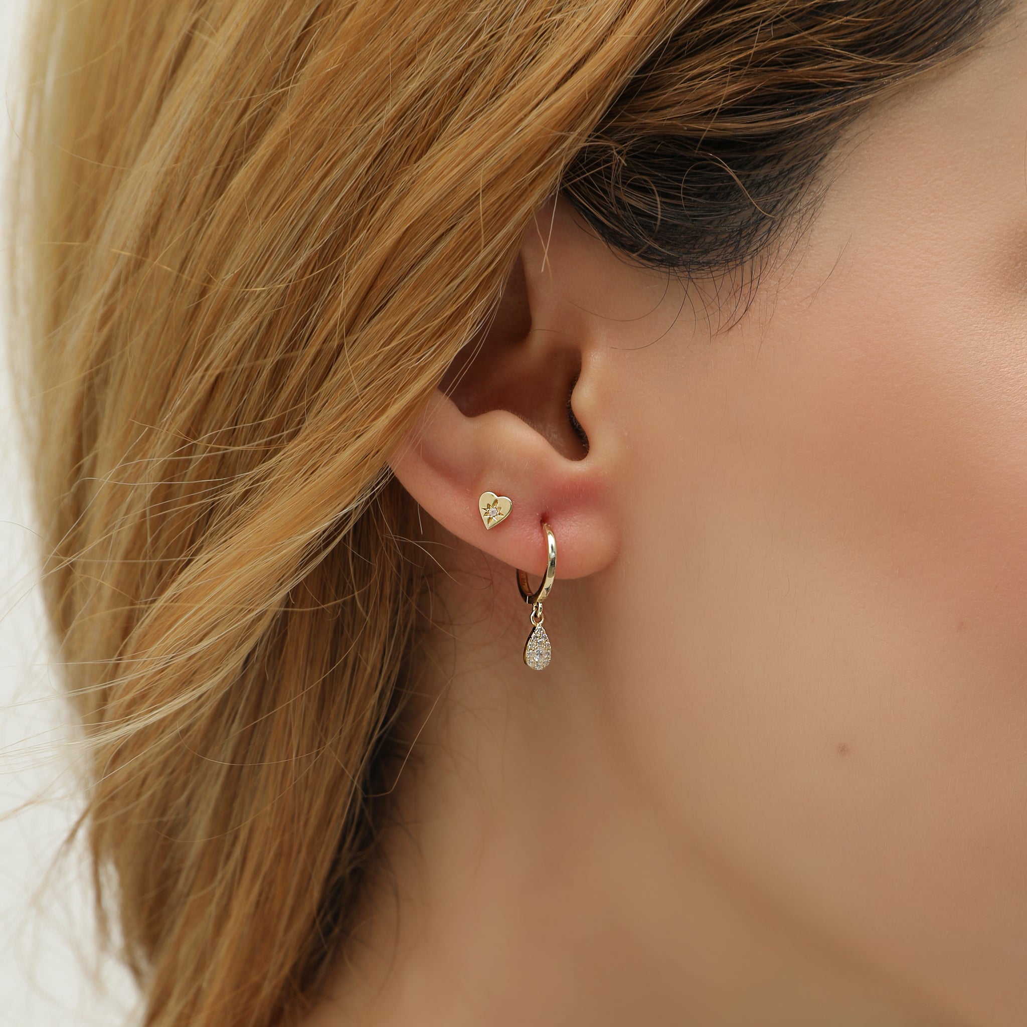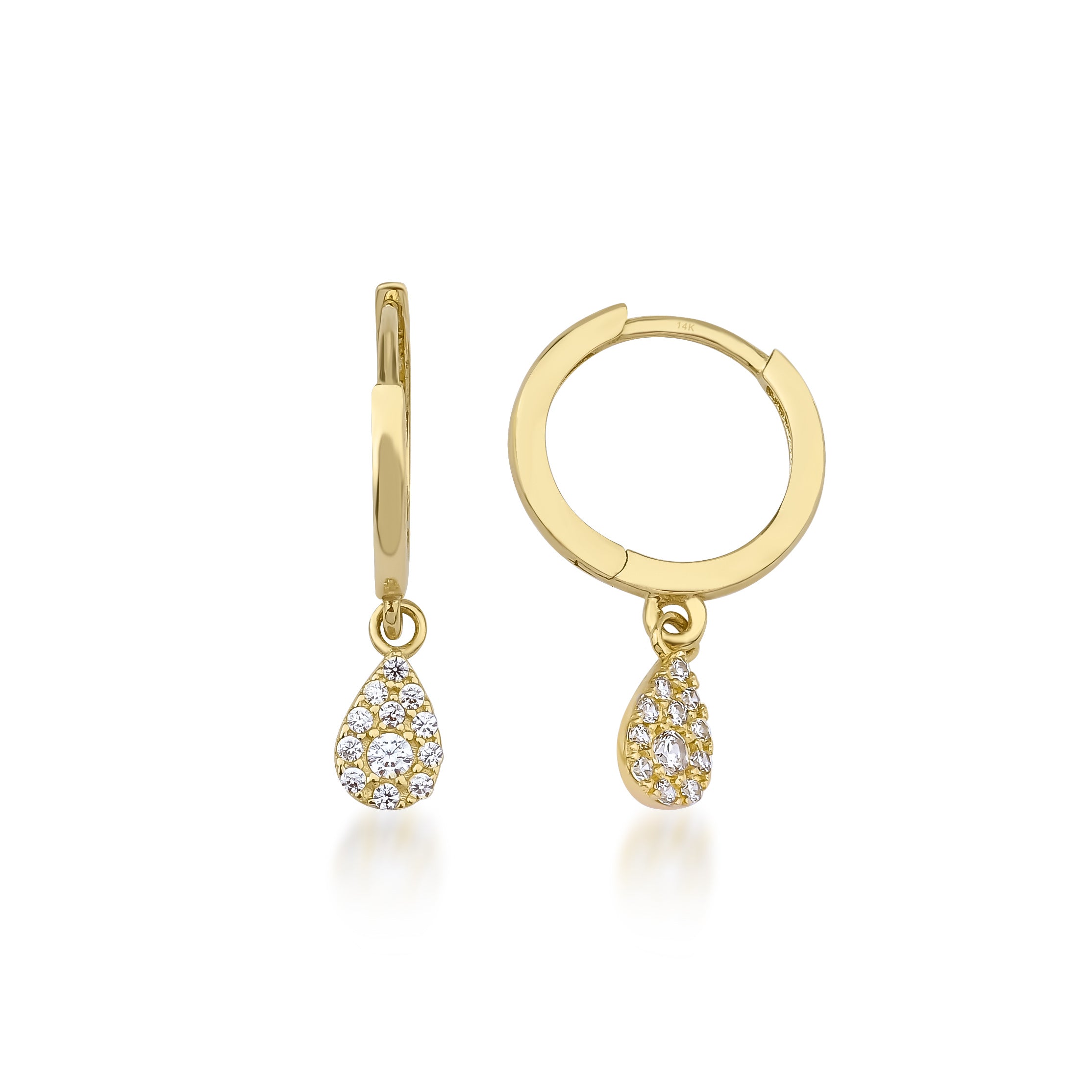 14 Ayar Altın Işıltılı Damla Halka Küpe