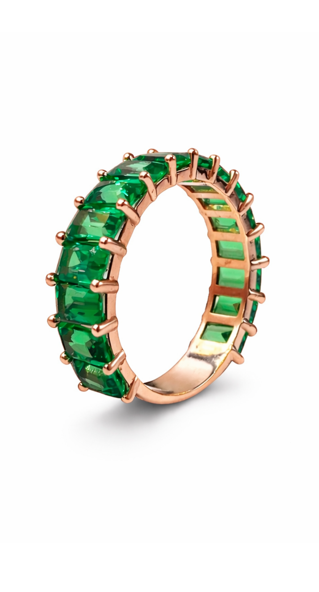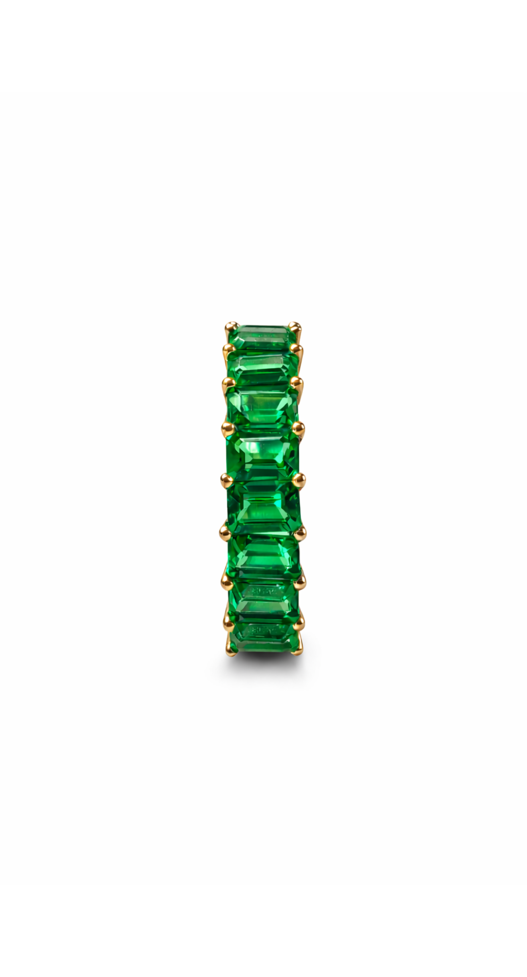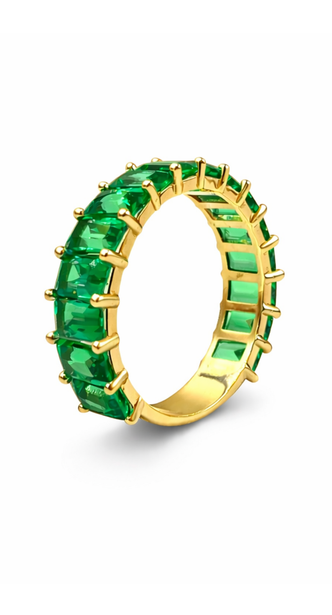 14 Ayar Altın Laboratuvar Üretimi Zümrüt Baget Sıra Taş Yüzük