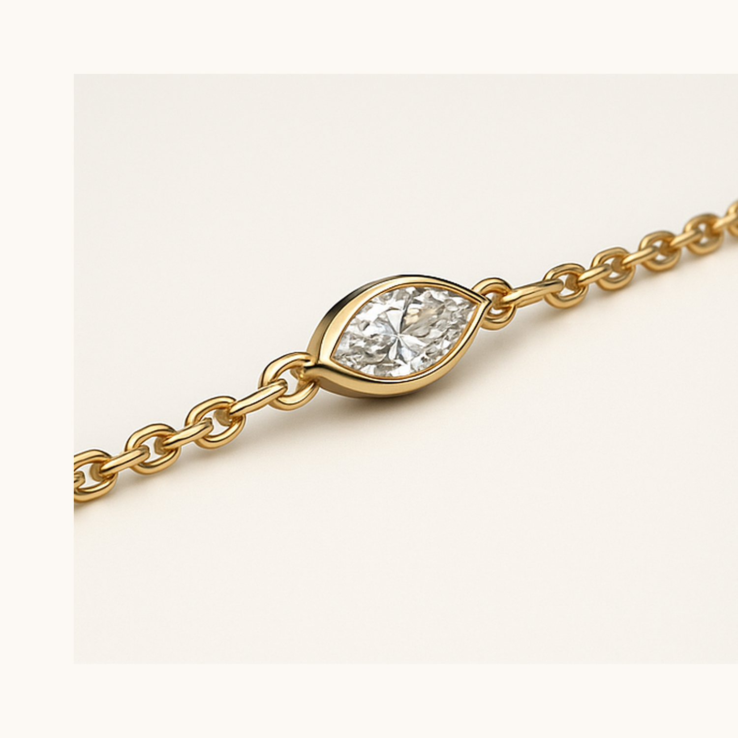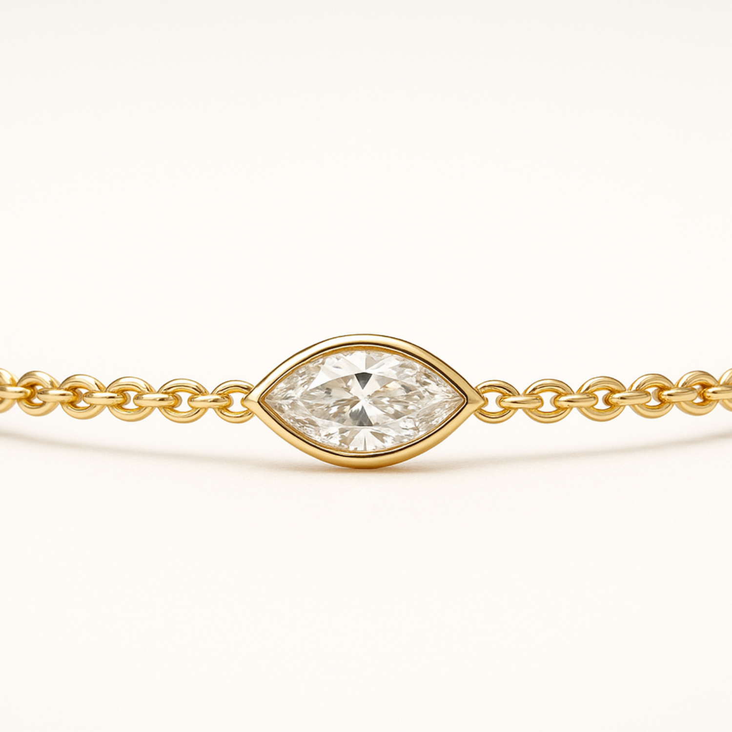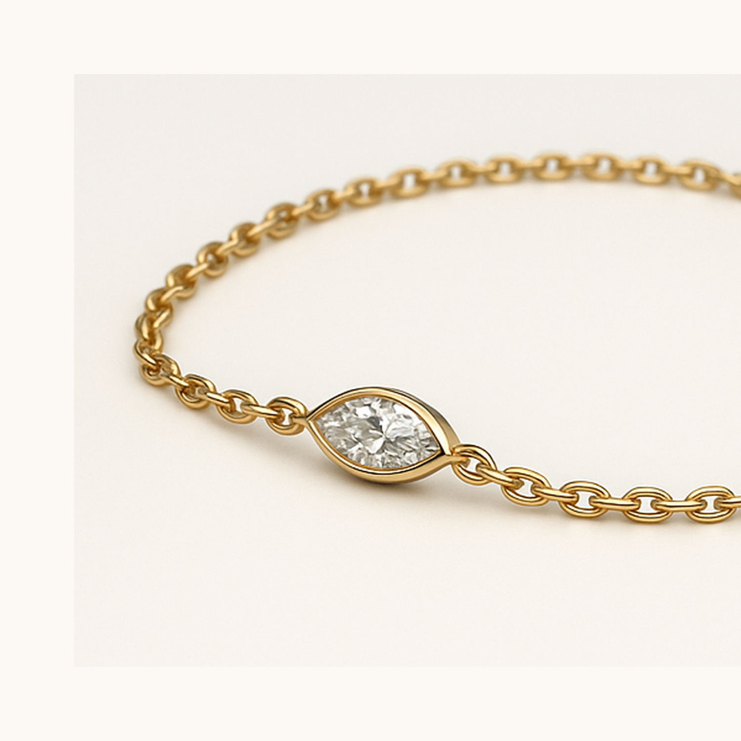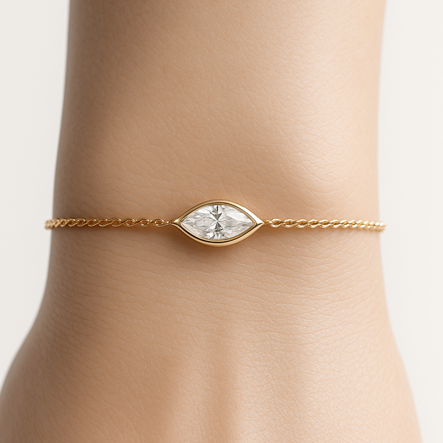 14 Ayar Altın Markiz Taşlı Zincir Bileklik