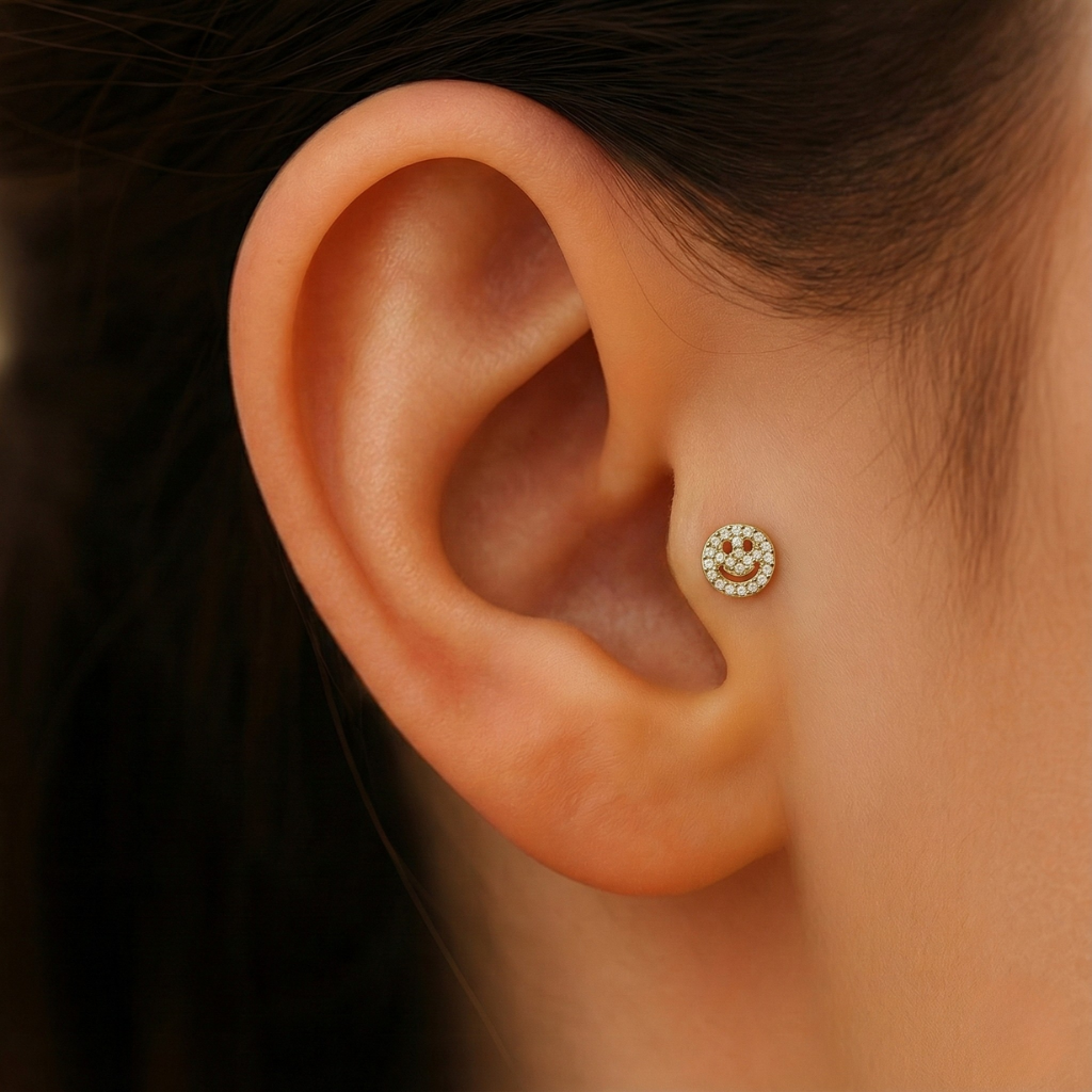 14 Ayar Altın Taşlı Gülen Yüz Piercing