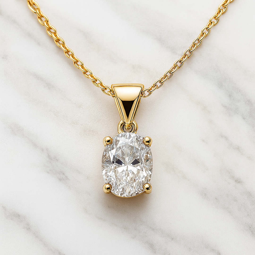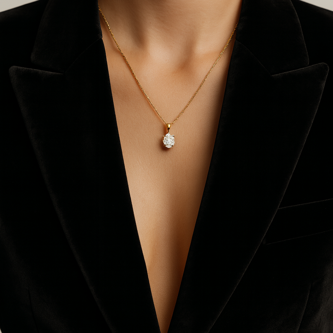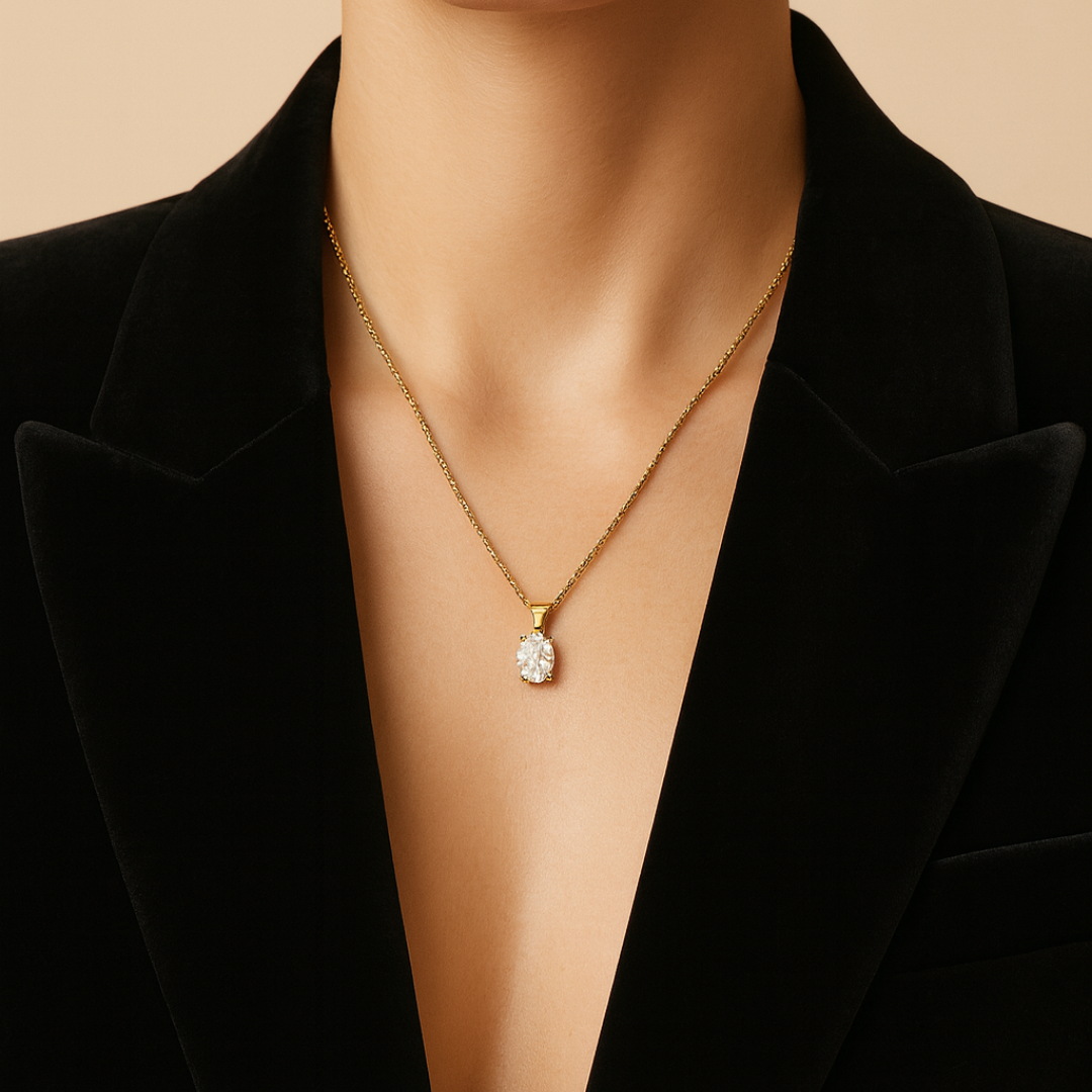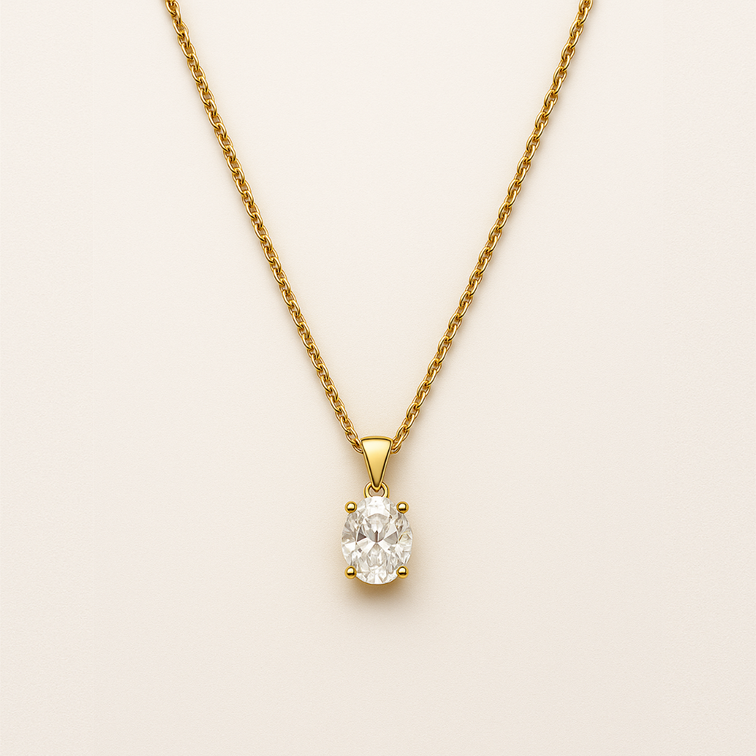 Minimalist zarafetiyle her stile uyum sağlayan 14 ayar altın tek taşlı zincir kolye, sade ama göz alıcı tasarımıyla öne çıkıyor. Parlak oval kesim taşı, ışığı mükemmel şekilde yansıtarak ışıltınızı gün boyu korur. Günlük kullanımda veya özel davetlerde zarif bir dokunuş arayanlar için ideal bir parçadır.