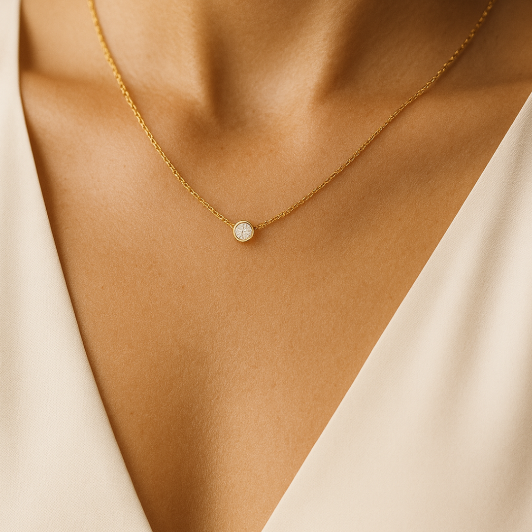 14 Ayar Altın Yuvarlak Tek Taşlı Zincir Kolye